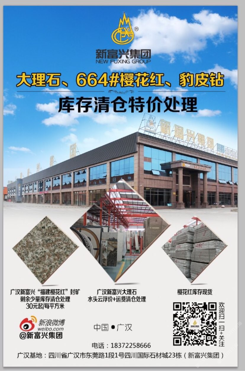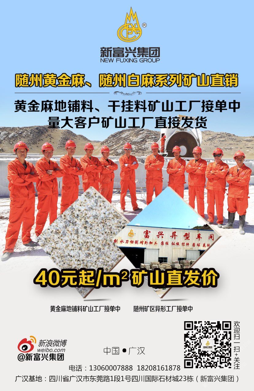新富興集團旗下礦業(yè)板塊國內擁有6座大型礦山分別分布在福建、湖南、湖北、新疆等省市盛產:664#羅源紅、隨州黃金麻、黃金鉆、卡基諾金、隨州白麻、新疆豹皮鉆、焉耆白麻、湖南芝麻灰等花崗巖;石材板塊分別在四川省以及新疆維吾爾自治區(qū);新疆擁有三家企業(yè)其中四川省范圍內擁有3個大型石材加工基地;成都工廠位于成都沙西線主營:花崗巖工程建設用石材;2013年成立廣漢富興石業(yè)有限公司在四川廣漢市修建兩家工廠分別位于:四川省廣漢市東莞路一段1號四川國際石材城23棟和29棟;總占地面積55畝。成都工廠負責銷售自有礦山的石材產品以及其他品種進口、國產花崗巖石材產品大量使用于市政工程、房地產以及大型公共設施;廣漢工廠除專業(yè)批發(fā)自有礦山:福建、湖北、湖南、四川、新疆等省市自有礦山石材產品外,大理石是新富興集團四川地區(qū)石材產業(yè)的主力產品,早在1998年開始新富興集團前身企業(yè)之一“成都市金牛區(qū)富興石材加工廠”就已經成為西南地區(qū)的進口大理石供應商之一;現(xiàn)目前集團規(guī)模不斷擴大并在福建、湖南、湖北、四川、新疆等地區(qū)開發(fā)6座大型礦山并有著的礦山資源優(yōu)勢掌握了產品的源頭以及多年積攢的社會的人脈資源與管理團隊擁有各種先進的技術與設備;承接國內外各種異形大理石、花崗石加工,廠區(qū)擁有先進的水刀設備多臺擁有紅外線橋式切割設備數(shù)十臺,全自動電腦仿形設備數(shù)十臺,全自動線條磨邊流水線設備多臺,異形圓柱設備多臺,異形車床等眾多異形設備同時擁有熟練的技師配合優(yōu)秀的管理者及高效率的服務團隊使得新富興集團四川地區(qū)石材產業(yè)板塊一直處于當?shù)匚恢茫瑸榧瘓F業(yè)績做出杰出的貢獻。
