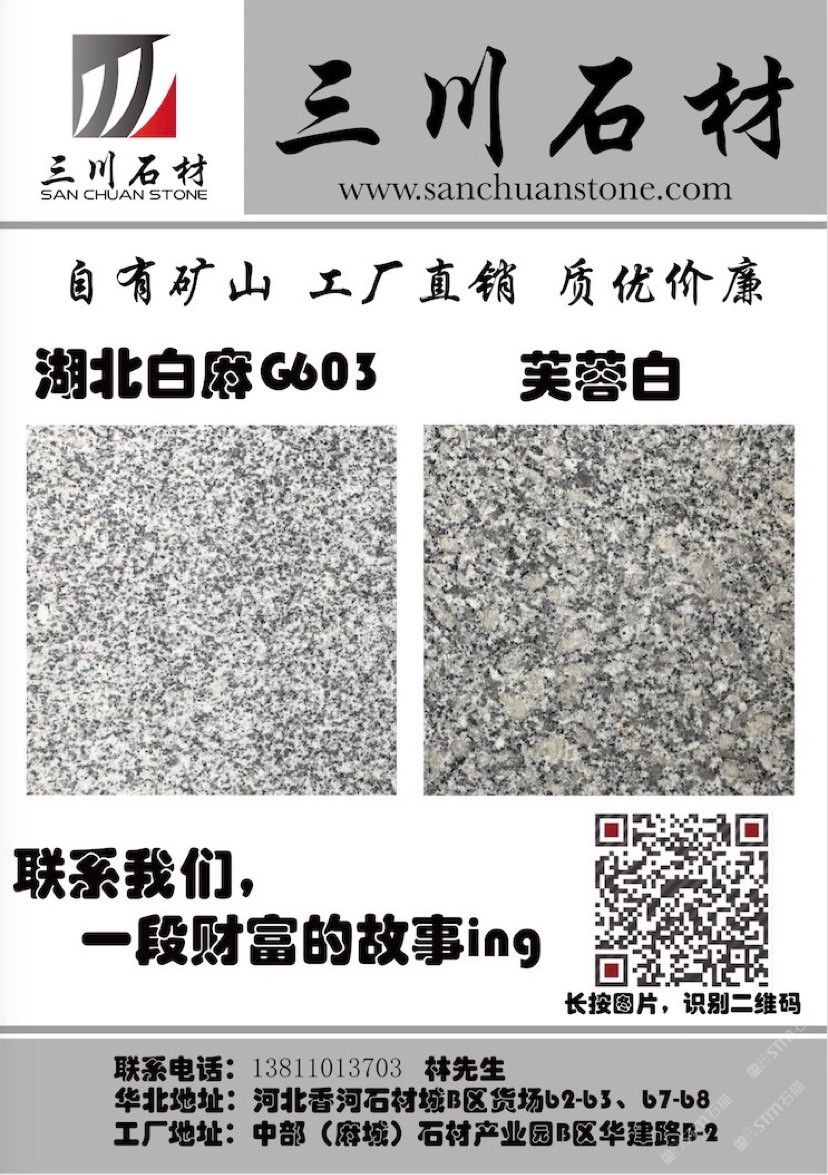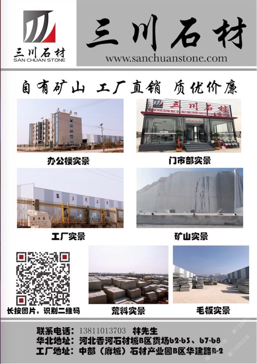 三川石材有限公司是一家專注于國(guó)內(nèi)石礦開(kāi)采、加工及貿(mào)易的專業(yè)化公司,是湖北省麻城市知名石材企業(yè)之一。公司的創(chuàng)始人團(tuán)隊(duì)從業(yè)始于1996年初,1998年在福建省羅源縣投資建廠,經(jīng)過(guò)近三十多年的發(fā)展,2013年將公司總部設(shè)在中部(麻城)石材循環(huán)經(jīng)濟(jì)產(chǎn)業(yè)園,下設(shè)河北、湖北、重慶、江西、浙江等幾大生產(chǎn)加工基地及銷售網(wǎng)點(diǎn)。