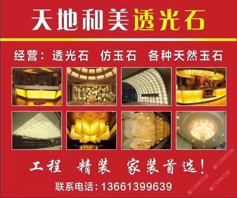 天地和美建材(北京)有限公司專業(yè)生產(chǎn)透光石、雪花石、美潔石、鳳凰石、真藏石、植物標(biāo)本生態(tài)石、云石燈飾及玉石臺盆的企業(yè),本企業(yè)擁有獨立的生產(chǎn)車間,先進(jìn)、一流的生產(chǎn)設(shè)備和精湛的生產(chǎn)技術(shù),另外,本企業(yè)擁有雄厚的設(shè)計能力和生產(chǎn)制造體系,產(chǎn)品選用優(yōu)質(zhì)的材料進(jìn)行加工生產(chǎn),生產(chǎn)過程嚴(yán)格按照質(zhì)量管理體系執(zhí)行,并且已通過ISO9000管理體系認(rèn)證,從而使產(chǎn)品達(dá)到品質(zhì)穩(wěn)定可靠、價格低廉優(yōu)惠、外觀時尚大方、進(jìn)而使產(chǎn)品享譽國內(nèi)外,遠(yuǎn)銷海內(nèi)外。本企業(yè)生產(chǎn)的產(chǎn)品廣泛應(yīng)用于燈飾、透光吊燈、燈柱、地面透光柱、透光吧臺、透光背景墻、櫥柜臺面、浴室臺面、窗臺面、洗面臺、廚衛(wèi)墻面、餐桌面、茶幾等,同時產(chǎn)品具有重量輕、硬度高、防火抗磨、耐酸、耐堿、耐腐蝕、無輻射、無縫連接、透光度強等多動能特點,也屬于新型環(huán)保裝飾材料,被配套使用于住宅、別墅、酒店、會所、商場及各大大型工程室內(nèi)外裝飾等眾多場合。本企業(yè)秉承“品質(zhì)至上,信譽”的宗旨和完善的售前售后服務(wù),贏得了廣大客戶和消費者的一致好評,熱誠歡迎各界人士前來選購、批發(fā)、工程咨詢、燈飾設(shè)計、來圖來樣定做,也歡迎各界人士蒞臨指導(dǎo)。
