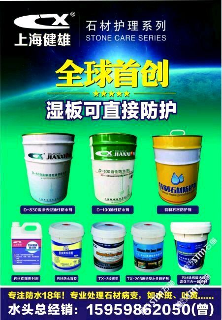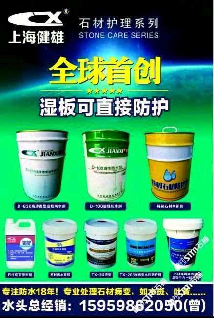 上海健雄建材有限公司成立于1998年,是上海一家從事石材養(yǎng)護(hù)方面研究的專業(yè)機(jī)構(gòu),致力于新型有機(jī)硅表面活性材料的開(kāi)發(fā)和合成,達(dá)到有機(jī)硅的防護(hù)效果!本公司針對(duì)石材品種打造各種石材養(yǎng)護(hù)劑和石材病變處理劑化學(xué)品,能適應(yīng)于客戶高質(zhì)量的要求,以質(zhì)量為核心的理念服務(wù)于各種石材企業(yè)!