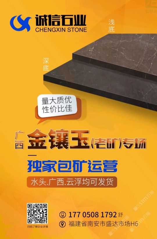 聚賢石業(yè)位于東升石材超市三號門第三個行吊,主營廣西老礦金鑲玉礦山總包,水頭總代理