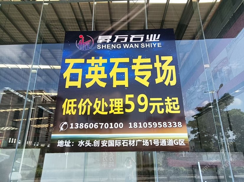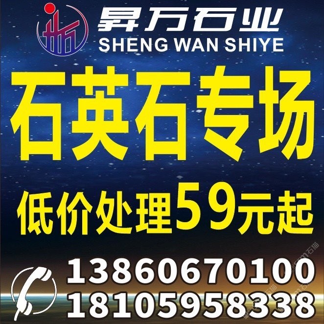 石英石專場(chǎng),庫(kù)存量2萬(wàn)平,驚爆價(jià)59元起!地址水頭鵬坤大板市場(chǎng)2號(hào)通道 聯(lián)系電話13860670100