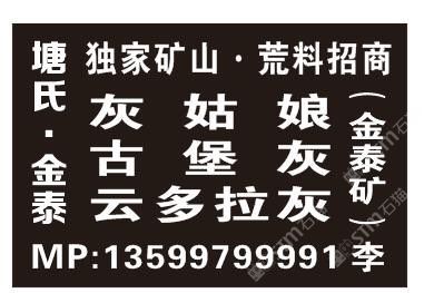 發(fā)布信息: 新品灰礦(金泰礦)、板面!礦口!全新上市,全面招商! 新品灰礦(金泰礦),底色白潤(rùn)、干凈、油亮、均勻,質(zhì)地堅(jiān)韌、清脆、不易斷裂!可替代古堡灰、云多拉灰、灰姑娘、美尼斯灰、歐米伽灰等品種!現(xiàn)陸續(xù)出料,特尋水頭、云浮、廣西有渠道、客戶基礎(chǔ)合作伙伴合作!可單點(diǎn)料、包料、包層、包礦等多種方式合作!亦可來(lái)單加工合作!歡迎電聯(lián)------塘氏*金泰建筑石業(yè) 李春華13599799991(水頭濱海光明石材城二幢B3區(qū))