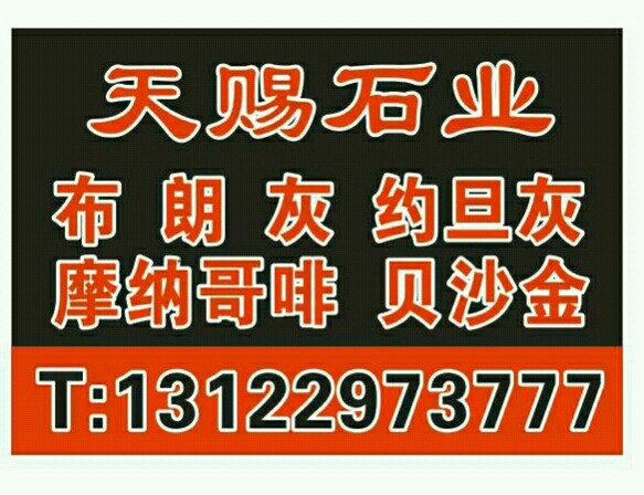 發(fā)布信息: 上海天賜石業(yè) 主營:布朗灰 約旦灰 貝沙金 摩納哥啡 地址:曹安公路4135號藍英 電話:13901791128