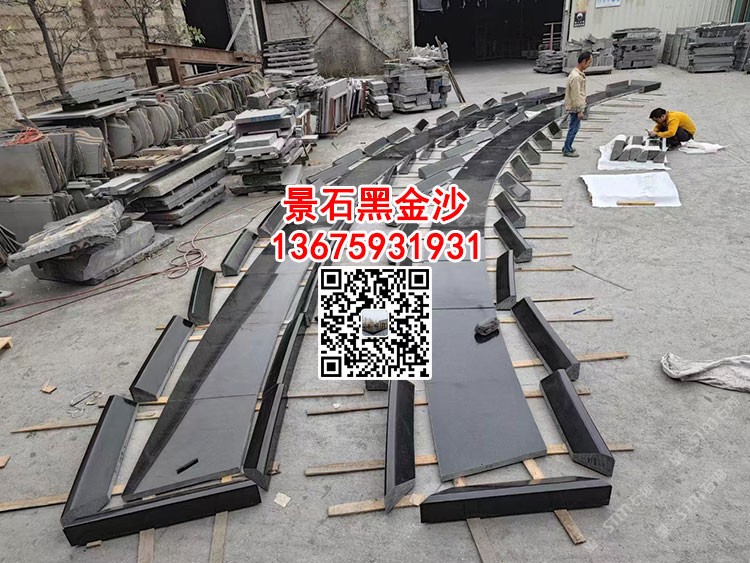 印度黑金沙噴水池水景鋪貼石材壓頂石安哥拉黑安格拉黑