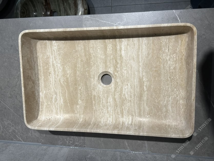 米白洞洗手盆 洞石洗手盆柱盆浴缸衛(wèi)浴盆石材家具