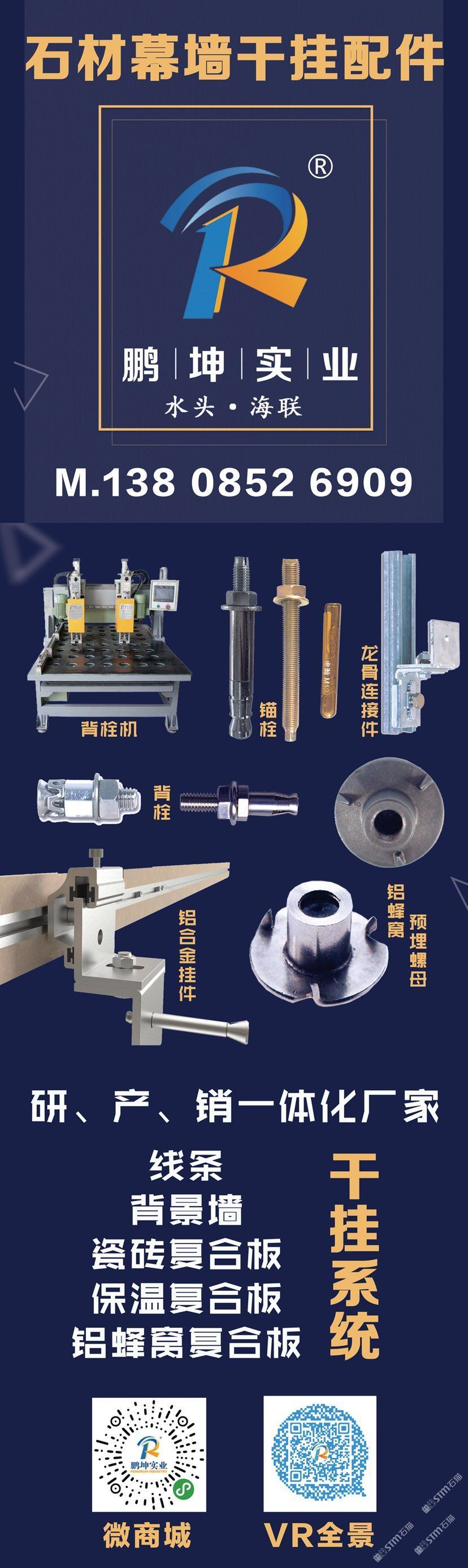 石材干掛件系統(tǒng)、鋁蜂窩預(yù)埋、背栓、背栓機(jī)、鋁合金等
