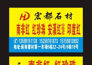 峰源石業(yè)水頭公司主營(yíng)產(chǎn)品:朝陽(yáng)紅(光面),新永定紅(光面),莎利士紅,黃金麻,白麻,染紅板企業(yè)地址:福建南安水頭建材市場(chǎng)24棟14號(hào)