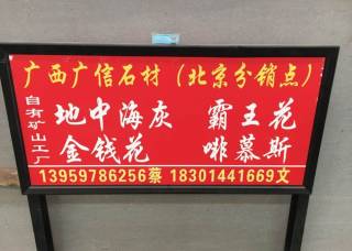 北京廣西石材主營(yíng)產(chǎn)品:黑白根,地中海灰,灰姑娘,灰姑娘(白底),灰姑娘(灰底),霸王花企業(yè)地址:北京朝陽(yáng)區(qū)易開(kāi)元石材市場(chǎng)一區(qū)四排86號(hào)