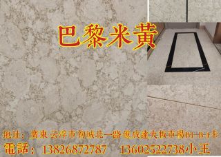 美琦(云浮)石業(yè)主營產(chǎn)品:西班牙米黃,巴黎米黃,黃金天龍1,伯利黃,金鑲玉,新世紀米黃,塞浦路斯灰(淺底),塞浦路斯灰(老礦)企業(yè)地址:廣東云浮河口初城北一路億成達大板市場B1- B 4卡