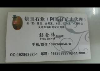 鼎信玉石主營產(chǎn)品:白玉4,青玉1,白玉1,白玉3,白玉,青玉石,青玉,青玉2,青玉(GD),青玉4,玉石,白雪公主,粉玉(巖板),粉玉,中青玉企業(yè)地址:福建南安水頭鎮(zhèn)濱海大道390-29正南方向180米中閩石材商城中閩石材城3區(qū) --鼎信玉石