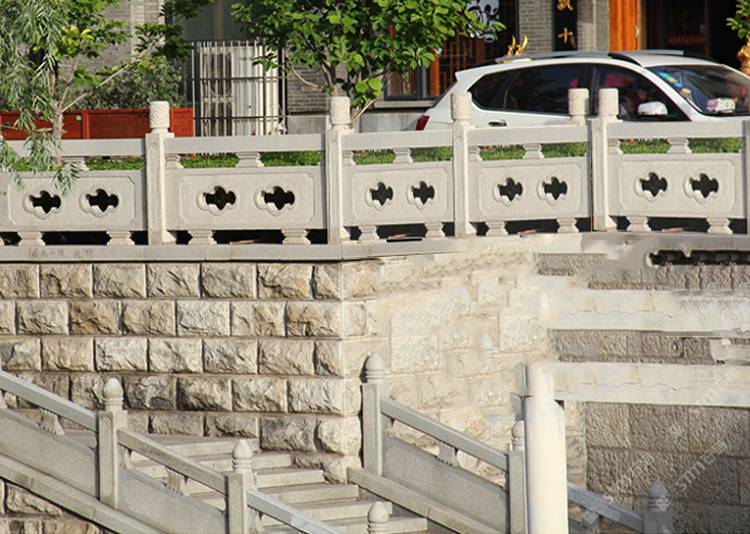 描述:節(jié)儉式欄桿是比較常見代表,也叫“漏空石欄桿”,其主要就是由立桿、扶手、墊塊組成,從欄桿的雕刻設計看,有不少也會采用橫檔以及花飾。這種欄桿在河邊護欄經(jīng)常使用,關(guān)鍵是欄桿價格便宜,護城河使用量大